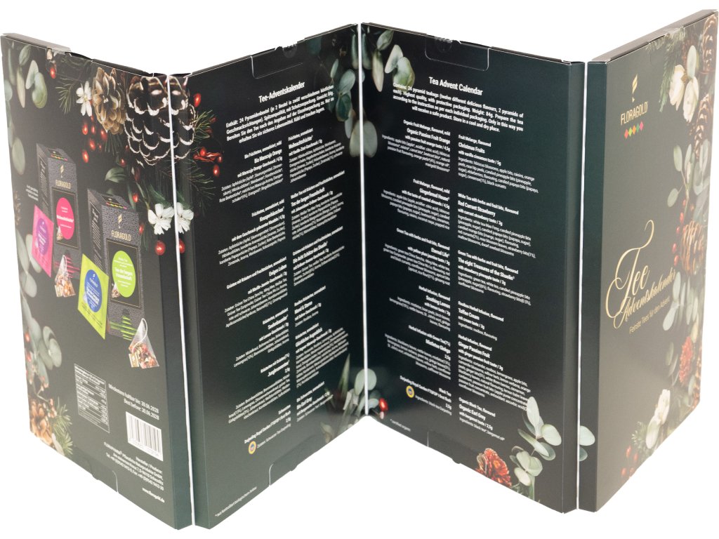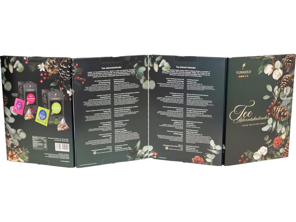 Adventní kalendář 2025 - Degustační kolekce prémiových čajů v pyramidových sáčcích - 24 čajových překvapení - Floragold