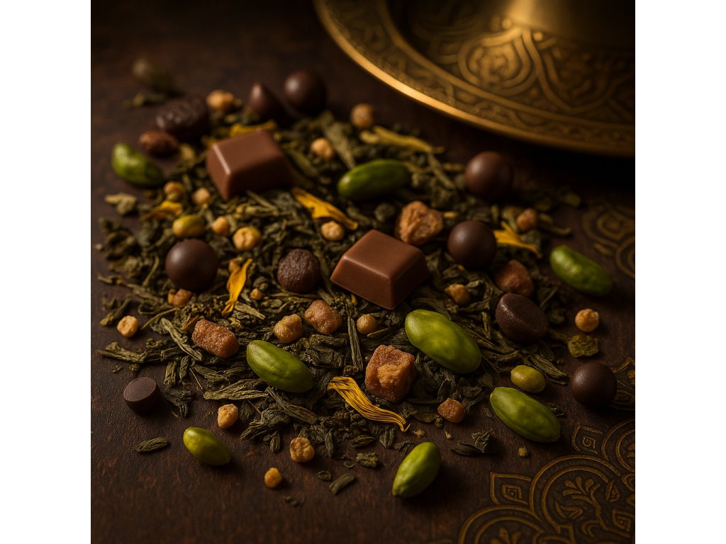 Chuť Dubaje - Zelený čaj s čokoládou, nugátem a pistáciemi - 80g - Teabee