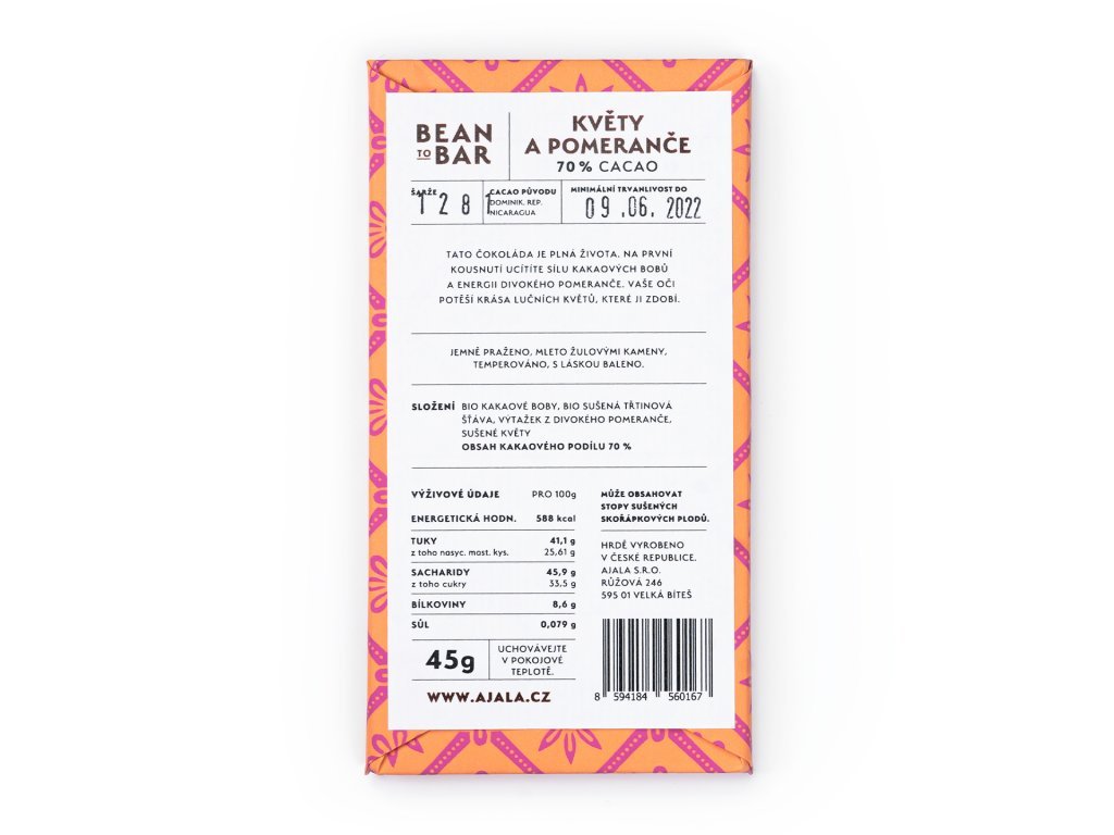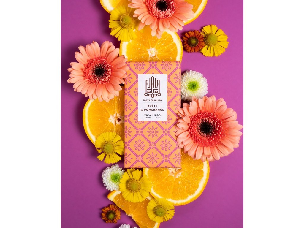 Čokoláda Květy a pomeranče - 70% kakaa 100% lásky - Ajala - 45g