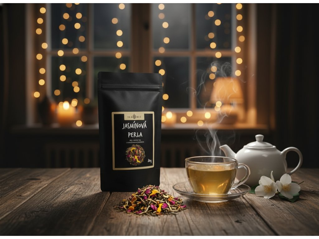 Jasmínová perla - Bílý a zelený čaj s meruňkami a jasmínem - 80g - Teabee