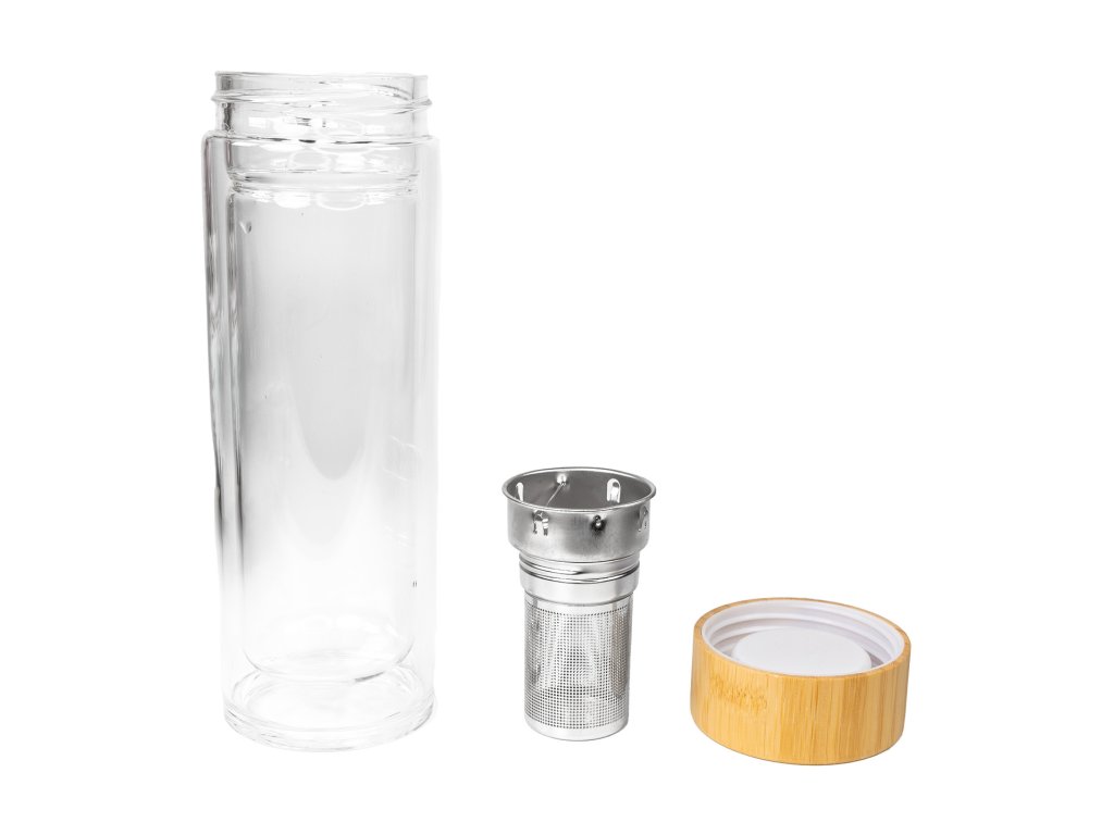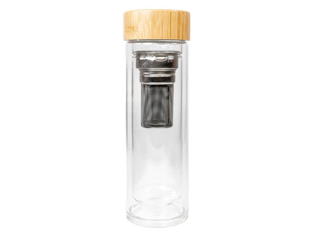 Čajový infuser - dvojitostenná termo fľaša s bambusovým viečkom - 400 ml - TEABEE