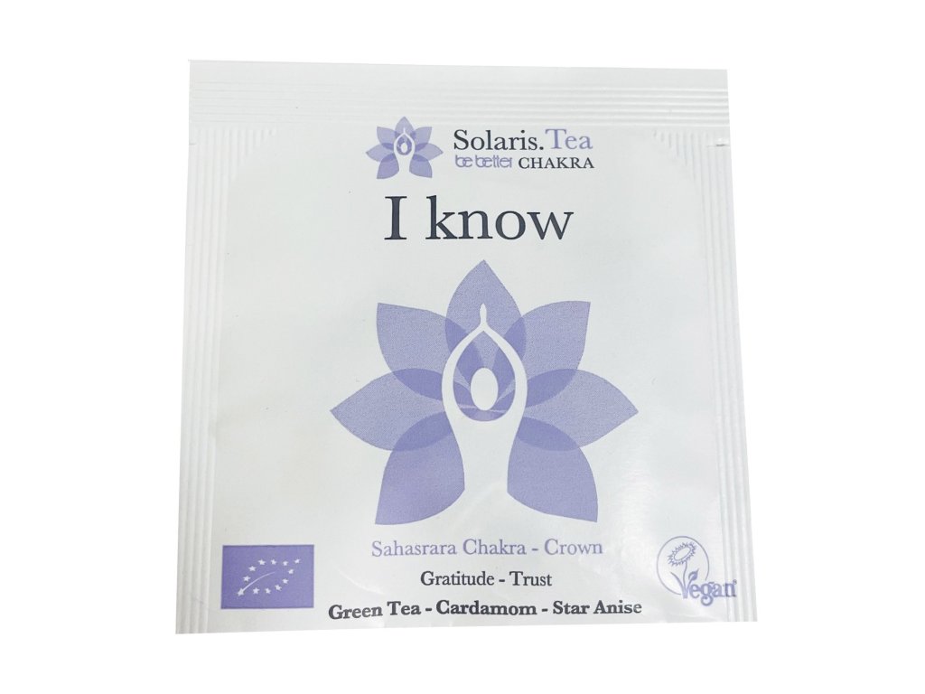 - I Know – Temenná čakra: zelený čaj, kardamón, pomarančová a citrónová kôra, klinček, aníz