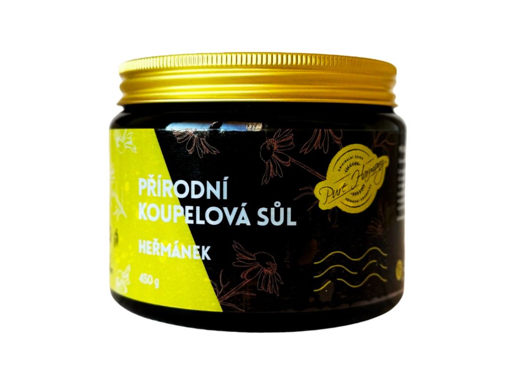 Prírodná soľ do kúpeľa v skle 450 g Harmanček PURE HARMONY